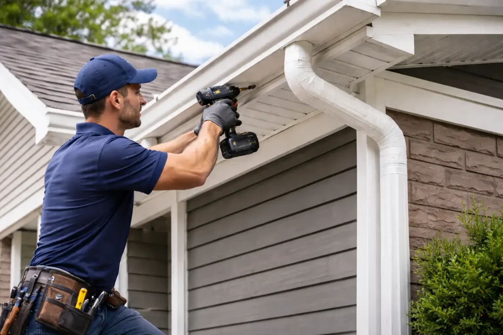 Our team experts provide professional eavestrough and soffit repair in Barrie to keep your roofing system functioning properly. Our team repairs leaks, replaces damaged sections, clears blockages, and ensures proper drainage. For soffits, we fix ventilation issues, seal gaps, and restore structural integrity to protect your home from moisture and pests.